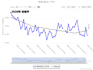 色々と調べていくうちに今年の海水温の時系列グラフが欲しいなと思ってました。