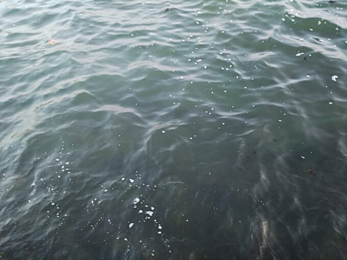 バスクリン色では無かったけれど、やはり菜っ葉潮は継続。水深は1m未満、海底が丸見えな場所なのに濁っていて見えない。