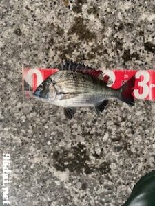 18時初めてウキに反応、かすかな沈みに合わせを入れてヒット。感触からサイズは期待できないのは察知できたが早々にカイズ27cmがゲットできたのであとはサイズアップと意気込んだがそれっきり。