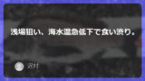 大分、日が伸びた。19:00でもぼんやり明るい。状況は北東の風弱い、うねりもあるが高くはない。薄濁り。海水温は18.6度だった