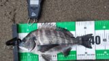 6:00、状況が一変する。エサが残り始める。オキアミも頭ごと残ってくる。黒鯛の気配と感じる。オキアミなどで流してもアタリは出ない。6:15、ここで生サナギダンゴ・ソフトタイプを使ってみる。すると一旦食い上げ、押さえ込み。アワセはまだ我慢。やっとウキが入り見えなくなった。数秒見えないのでアワセると根掛かり?、いや動き始めた。ゴンゴンと力強い引き、突っ込まれるがレバーブレーキで回避。重量感たっぷり、全く寄ってこない。根の方に走らなかったのでゆっくり慎重に寄せ始める。波打ち際でまたひと暴れ、慎重に対処しタモ入れ、おっこれは50行ったか、2キロ超えたか?という感じ。計測してみると5mm足りない(泣)・2kg行かない、49.5cm 1.845kgの黒鯛をゲットしました。でも取れただけ良かった。