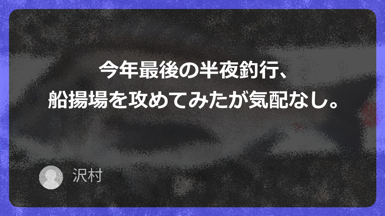 これで今年の半夜釣行は最後、来年はこの船揚場を早くから狙ってみたいと思います。