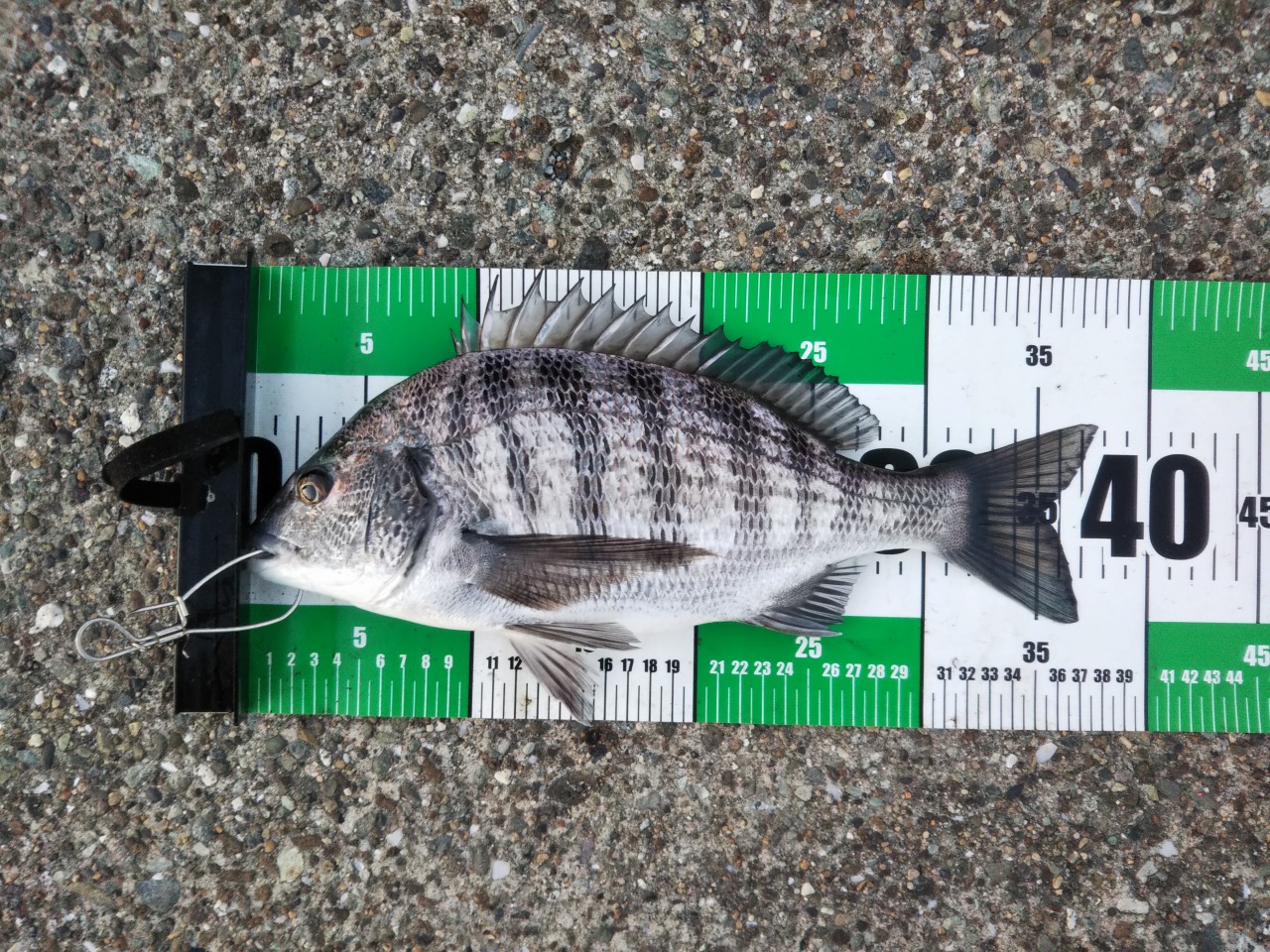 地獄のち天国へ、38cm 0.87kgの黒鯛をゲット。
