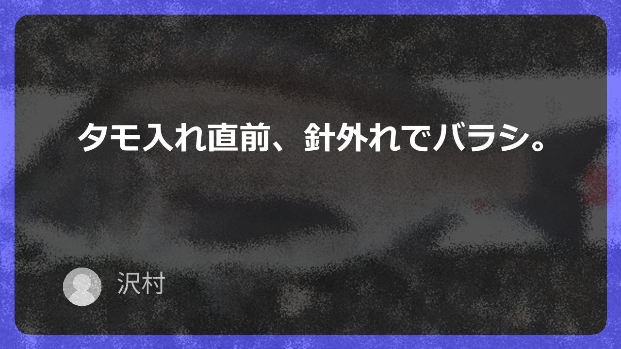 タモ入れ直前、針外れでバラシ。