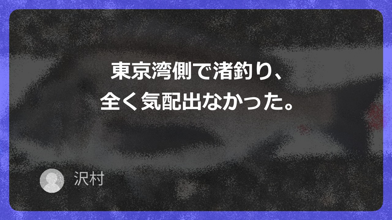 14:45から開始。最初は流れ藻を引っ掛けて取ってしまう、やがて流れて無くなった。オキアミが残ったのは最初だけ、15:00にはフグが煩くなる。15:15に消し込んだけど中型ショウサイフグ、たまに小さいクサフグが掛かってくる。